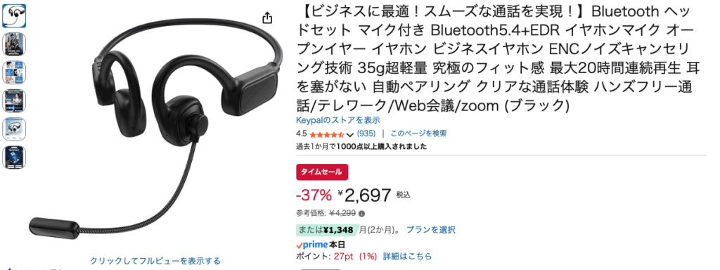 2位 アクアボイス&マイク付きBluetoothイヤホン(オープンイヤー)